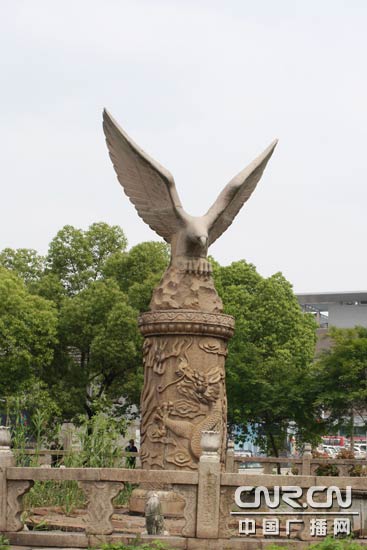 百年蘇綸廠標(biāo)志:雕龍柱體和展翅翱翔的老鷹。(中廣網(wǎng)記者李玲燕 攝)