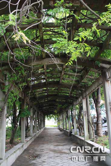 老蘇綸廠保留下來的綠色走廊,滿眼郁郁蒼蒼。(中廣網(wǎng)記者李玲燕 攝)