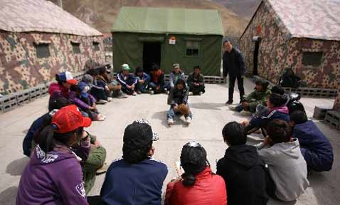 蘭州軍區(qū)援建的玉樹(shù)災(zāi)區(qū)第一個(gè)“高考帳篷學(xué)!21日下午在結(jié)古鎮(zhèn)開(kāi)學(xué),首批入讀高三學(xué)生116名。