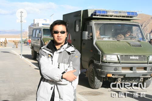 中廣網(wǎng)記者張鵬在玉樹(shù)地震災(zāi)區(qū)