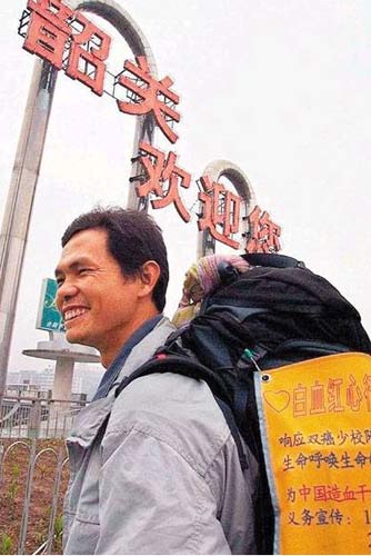 黃福榮2002年為血癌病人籌款,由香港出發(fā)展開(kāi)“行路上北京”壯舉。