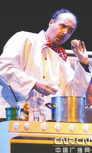 一個(gè)魔幻廚房,伴隨著滑稽的聲效,丹麥魔術(shù)師謝夫·馬吉克變身廚師,這邊在一只毛巾擰成的“烤雞”上取出一只雞蛋,轉(zhuǎn)手在自己腦門(mén)上變成了煎雞蛋。另外,在最常見(jiàn)的變紙牌技法中,馬吉克用假裝子彈上膛和接住子彈的動(dòng)作將紙牌變出,他的滑稽自然的表演成了本場(chǎng)掌聲最多的“開(kāi)心果”。獨(dú)特的創(chuàng)意與幽默的表演也成為西方選手的殺手锏。