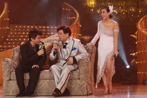 同樣得到優(yōu)待的還有“內(nèi)地綜藝女王”李靜,跳舞剛結(jié)束,現(xiàn)場就搬上了標(biāo)志性道具——沙發(fā),對趙忠祥和吳宗憲來了一次“超級訪問”。機智的問題、快速的反應(yīng)讓人一窺女王的風(fēng)范,而穿著風(fēng)情萬種的倫巴舞裙做主持對李靜來說也是難得的體驗了。