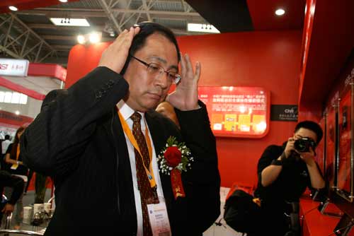 高通大中華區(qū)總裁孟樸在中央臺展區(qū)聽珍貴聲音資料