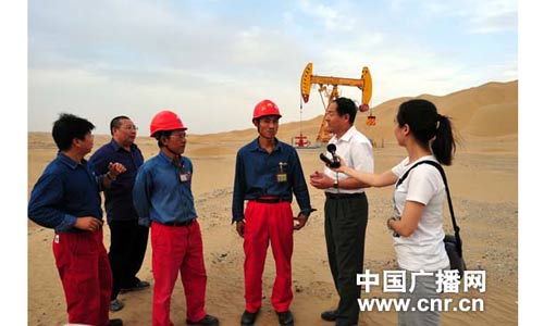 中央臺副總編輯杜嗣琨帶領(lǐng)“走基層”采訪組赴塔中油田采訪。