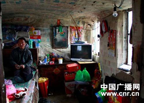 小孫悅的家,是一間用木板和泥巴搭建成的房子,也就十幾平方米大小。冬天了,窗戶上沒有玻璃,只是蒙上了一層塑料,房頂上也只是鋪上一層玉米稈來防雨防寒,屋子里的墻和房頂都是用報紙糊上的。來到房間里,我們終于見到了小孫悅和她的父母。