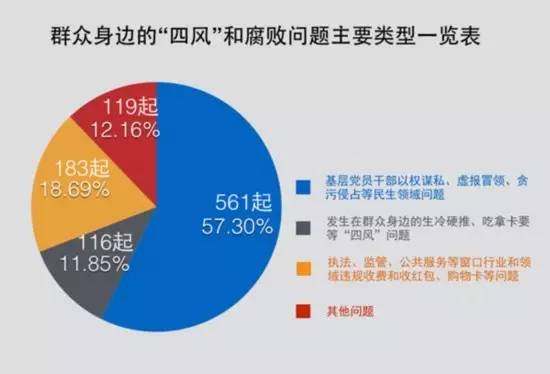 從通報(bào)數(shù)據(jù)看,基層黨員干部在土地征收流轉(zhuǎn)、“三資”管理、惠農(nóng)補(bǔ)貼、扶貧救濟(jì)、低保醫(yī)保、舊村改造資金、社會(huì)撫養(yǎng)費(fèi)管理使用方面以權(quán)謀私、虛報(bào)冒領(lǐng)、貪污侵占等問題共561起,約占通報(bào)問題總數(shù)的57%。