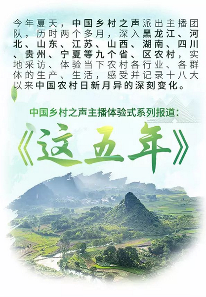 中國鄉(xiāng)村之聲這五年,見證了十八大以來中國農(nóng)村日新月異的這五年。為了感受并記錄中國農(nóng)村這五年的深刻變化,今年夏天,中國鄉(xiāng)村之聲派出主持人團隊,歷時兩個多月,深入河北、山東、寧夏、四川、黑龍江等九個省、區(qū)的農(nóng)村,實地采訪、體驗當(dāng)下農(nóng)村各行業(yè)、各群體的生產(chǎn)、生活。
