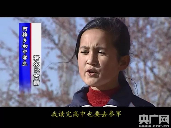 努爾比古麗·尼亞孜:我從2006年開始在這個學校上學,那時學校的環(huán)境特別差,然后69220部隊的解放軍叔叔來到這,幫助我們建筑了新的教學樓、宿舍樓,學校有了很大的變化,有困難的學生也有了補助,我還希望在這里上班。部隊的同志們給我們創(chuàng)造了這個機會,我們要好好珍惜,要繼續(xù)努力。