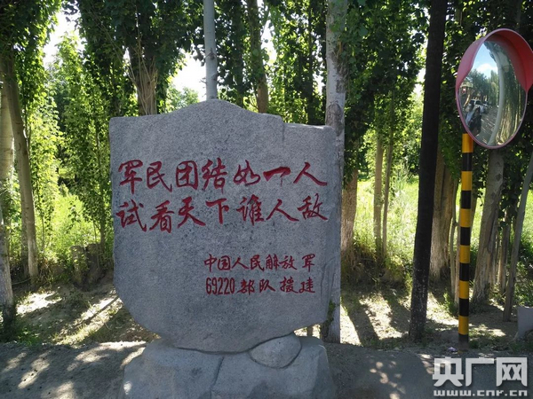 在出村的路上,又出現(xiàn)一個石碑,上面寫著:軍民團結如一人,試看天下誰人敵。