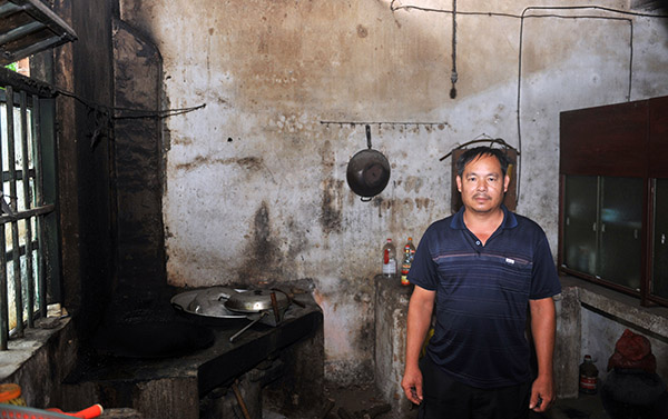 瓊中縣什運(yùn)鄉(xiāng)什龍村村小組長(zhǎng)王國(guó)強(qiáng)在他家的廚房里(6月23日攝)。