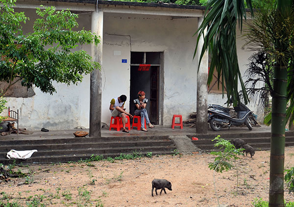 6月23日,在瓊中縣什運(yùn)鄉(xiāng)什龍村,年輕人坐在房前。