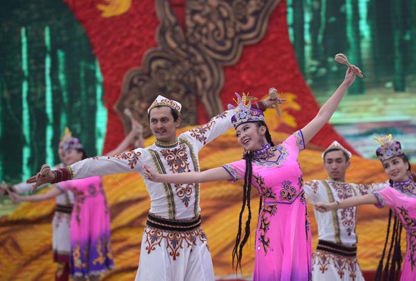 10月28日,來自新疆維吾爾自治區(qū)的演員在開幕式上表演舞蹈《手鼓舞》。
