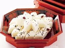 年糕又稱“年年糕”,與“年年高”諧音,寓意著人們的工作生活一年比一年提高。據(jù)說,最早時(shí)年糕是為午夜祭神、歲朝供祖先所用,后來(lái)才成為春節(jié)食品。年糕多用糯米磨粉制成。其種類很多,具有代表性的有北方的白糕、塞北農(nóng)家的黃米糕、江南水鄉(xiāng)的水磨年糕、臺(tái)灣的紅龜糕等。
