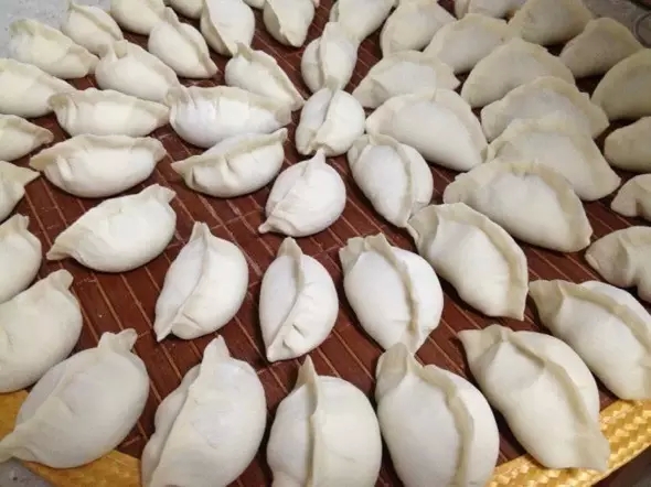 另外,包好的餃子還要擺放整齊,不能亂放。在準(zhǔn)備好的高粱梃子做成的圓平鍋蓋上,撒上薄薄的一層面粉,將餃子從外圍一圈一圈地?cái)[起,直到擺滿為止,民間俗稱為“圈福”。