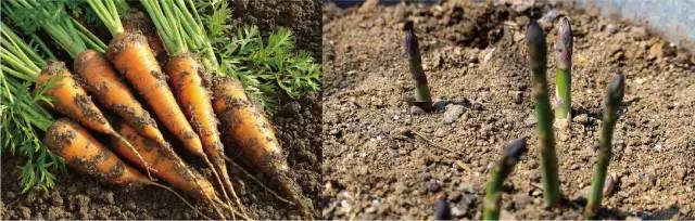 北方地區(qū)綠蘆筍一般于1月上中旬在日光溫室中進行育苗。當幼苗地上莖長出3根以上時進行移栽定植,按南北行向挖定植溝,行距1.2-1.4米,株距25厘米,溝寬40厘米,溝深40-50厘米。春胡蘿卜于3月下旬至4月上旬播種,采用平畦方式栽培,畦面1-1.2米,行距25厘米,播種后90-100天收獲。