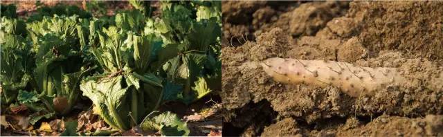 山藥采取的是等行種植,行距為1米。8月份的時候,在山藥行間種植1行大白菜;10月份初霜過后,要把山藥藤蔓以及架材,順著山藥溝的方向,按倒在地上,讓大白菜得到充足的陽光和吸收剩余的肥料,以利于生長。11月份左右要根據(jù)天氣的變化及時采收大白菜。