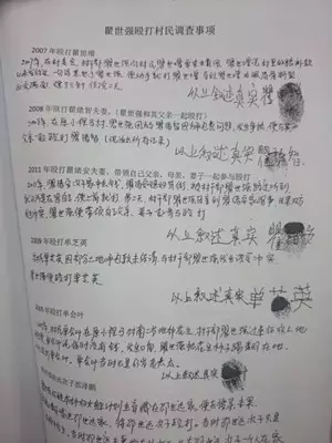 從前年開始,小探馬村開始聯(lián)名舉報(bào)村支書瞿世強(qiáng),在村民提供的聯(lián)名舉報(bào)材料里記者看到,絕大多數(shù)村民都在聯(lián)名舉報(bào)材料里按了手印,而其中反映被瞿世強(qiáng)毆打過的村民達(dá)到六位,另外村民統(tǒng)計(jì)瞿世強(qiáng)的貪污數(shù)額達(dá)到了百萬元左右。對(duì)此,瞿世強(qiáng)并不認(rèn)同。