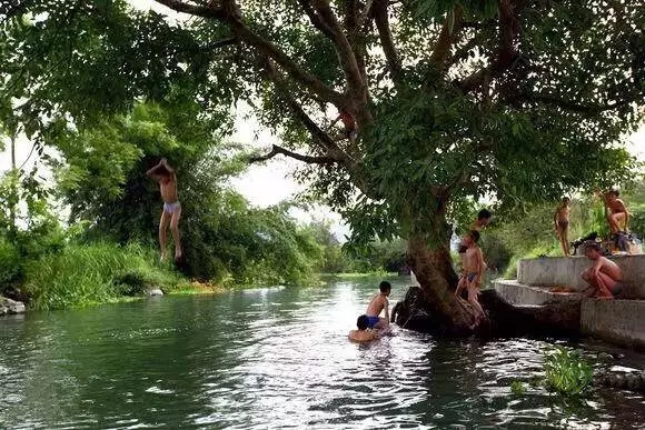跳水大部分農(nóng)村孩子都會(huì),夏天是大家表演跳水的最佳時(shí)機(jī)。雖然只是一個(gè)小水塘,一個(gè)小坑洼,但是對(duì)于農(nóng)村孩子來說,天氣太熱,這里就是他們解暑的地方。游泳都是靠自學(xué),沒有老師、沒有教練,小小年紀(jì)就能自學(xué)成才。即便沒有跳臺(tái),他們爬到樹上跳下來,真的很厲害哦。