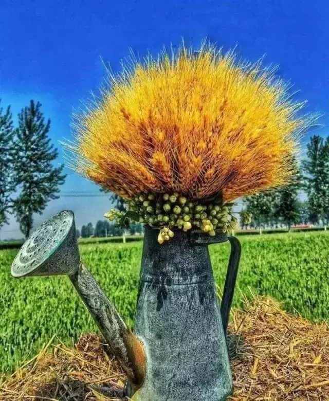 麥穗青青尚未成熟,為了達(dá)到喜慶亮眼的效果,