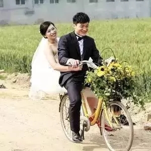 婚車是自行車!車前插滿了向日葵!