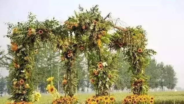 用向日葵搭了一個四角花亭作為儀式臺,