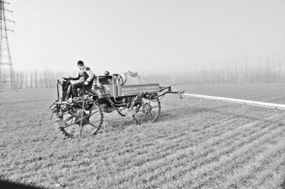 12月7日,安徽省宿州市埇橋區(qū)順河鄉(xiāng)風(fēng)光家庭農(nóng)場在給麥田噴灑除草劑。祝家剛攝