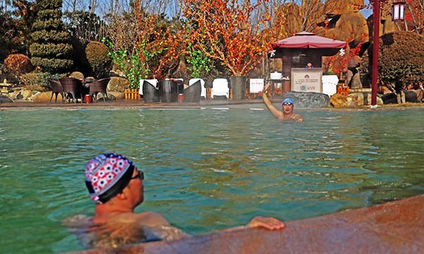 1月3日,游客在錦州東方華地城泡溫泉。