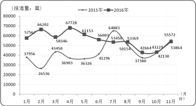 附:2015-2016年1-11月涉農(nóng)新聞輿情對比圖