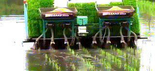 △這種水稻插秧機(jī)械,一過(guò)去就8行,簡(jiǎn)直是水上打印機(jī)。(德國(guó))