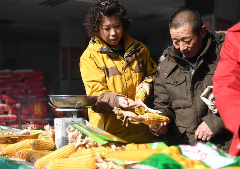 2月13日,梨樹縣一家種子商店銷售人員為農(nóng)民介紹玉米品種。 隨著天氣逐漸轉(zhuǎn)暖,吉林省各地陸續(xù)進(jìn)入春耕準(zhǔn)備階段。在全國產(chǎn)糧大縣吉林省四平市梨樹縣,農(nóng)民正在選購種子,進(jìn)行新一年的備耕工作。 新華社記者 張楠 攝