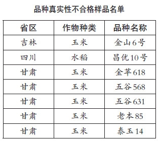 今年1月上旬,農(nóng)業(yè)部派出工作組對(duì)吉林、四川和甘肅三省開展了冬季企業(yè)監(jiān)督檢查專項(xiàng)行動(dòng)。根據(jù)近3年來歷次檢查和舉報(bào)情況,本次企業(yè)監(jiān)督檢查將63家種子企業(yè)的77個(gè)品種列為重點(diǎn)檢查對(duì)象。檢查共抽到45家企業(yè)的161個(gè)樣品,其中玉米124個(gè)、水稻37個(gè)。經(jīng)核對(duì),161個(gè)樣品中3個(gè)審定品種未提交標(biāo)準(zhǔn)樣品;經(jīng)檢測,7個(gè)樣品品種真實(shí)性不合格,不合格率4.5%。
