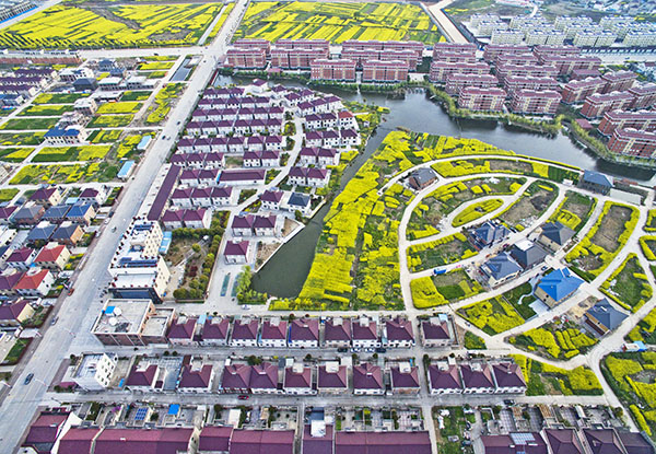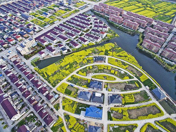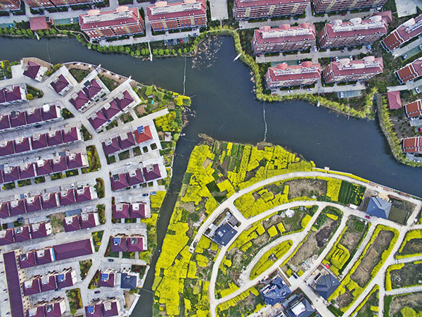 春暖花開時(shí)節(jié),江蘇省揚(yáng)中市新壩鎮(zhèn)菜花點(diǎn)綴、碧水環(huán)流,展現(xiàn)出一幅美麗的新農(nóng)村圖景(4月3日攝)。