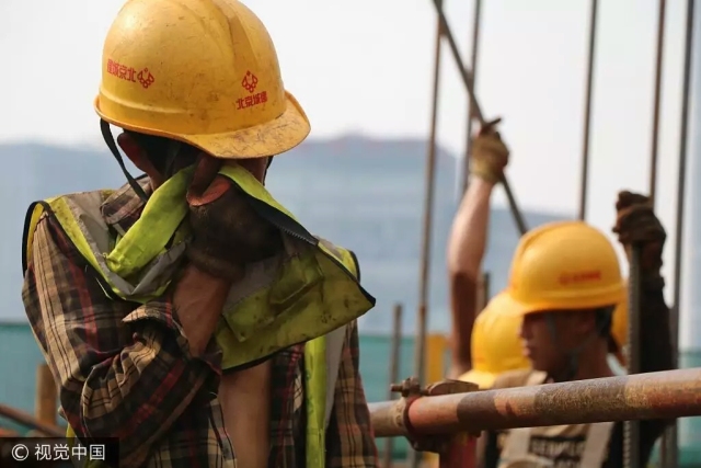 進入三伏天以來,北京的氣溫也是居高不下。在某工地上建筑工人正在抓緊施工,為了防止被烈日灼傷,被鋼筋擦傷,這些鋼筋工大多穿著長袖長褲,戴著手套。他們所要處理的鋼筋經(jīng)過暴曬后,表面溫度會超過40度,不戴手套是絕對不能觸碰的。在這樣的高溫環(huán)境下,他們每人每天要喝5升水,早中晚各一大壺,幾乎喝下去的水都變成汗了。