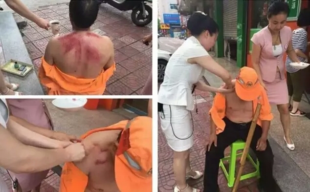 2016年6月23日,浙江東陽一環(huán)衛(wèi)工人中暑,所幸兩名美容師路過為其刮痧才緩解了老人的不適。