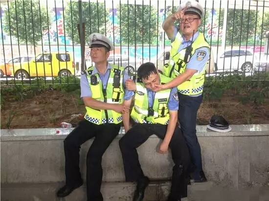 交警中暑暈倒,一身警服像從水里撈出來的一樣