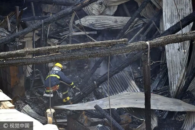 圖為2017年6月29日,西安一火場中消防官兵尋找復燃點。