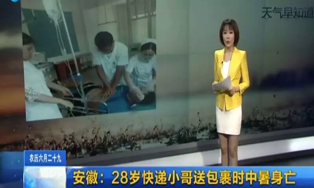 2016年7月29日,滁州市來安縣一家快遞公司的快遞員,頂著酷暑運送快遞時不幸中暑倒地,隨后的搶救也沒有挽回他的生命。