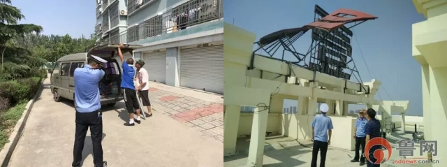 2017年7月12日,山東平度城管們頂著高溫拆除違規(guī)樓頂廣告字,即使頭頂大大的烈日、腳踩散發(fā)陣陣熱氣的樓板,他們依然“熱中作樂”。