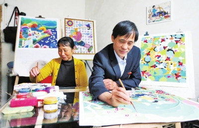 解振壽、解振輝兄弟系江西省永豐縣潭城鄉(xiāng)農(nóng)民,為“非遺”項目永豐農(nóng)民畫傳承人,作品曾入選中國藝術(shù)節(jié)農(nóng)民畫精品展、上海世博會農(nóng)民畫展和奧運會民間作品展。