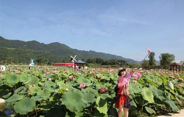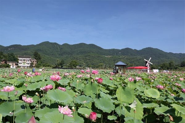 本網(wǎng)訊 進入夏季,正是荷花盛開的季節(jié)。7月23日,墊江縣新民鎮(zhèn)幾百畝荷花競相開放,引來無數(shù)游客駐足觀賞。黨的十八大以來,重慶市大力發(fā)展休閑鄉(xiāng)村旅游產(chǎn)業(yè),2016年,全市休閑鄉(xiāng)村旅游人數(shù)達到1.52億人次,綜合旅游收入349億元。今年上半年,全市休閑鄉(xiāng)村旅游人數(shù)達到8750萬人次,綜合旅游收入達到245億元。