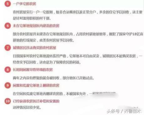 第十類,已經(jīng)獲得農(nóng)房拆遷補(bǔ)償和安置的,農(nóng)房要回收。