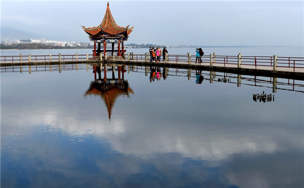 游人在云南大理洱海邊游覽(2015年12月9日攝)。新華社記者 藺以光 攝