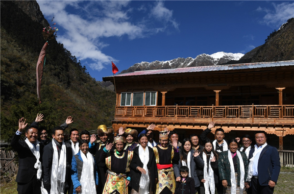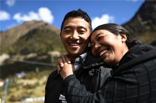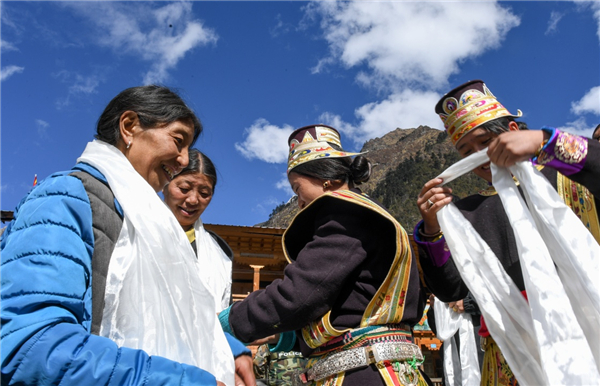 10月29日,西藏隆子縣玉麥鄉(xiāng)鄉(xiāng)親們給卓嘎、央宗姐妹獻(xiàn)上哈達(dá)表示祝賀。