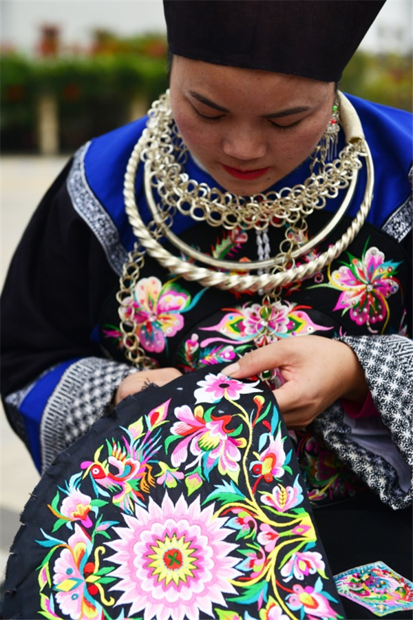當(dāng)日,貴州省劍河縣舉辦第六期“錦繡計(jì)劃”培訓(xùn),來自該縣的50余名苗、侗等少數(shù)民族繡娘在刺繡傳承人的指導(dǎo)下,學(xué)習(xí)苗族錫繡、苗族紅繡、侗族刺繡及旅游商品設(shè)計(jì)等手工技能。目前,劍河縣“錦繡計(jì)劃”培訓(xùn)活動(dòng)已幫助350余名農(nóng)村婦女實(shí)現(xiàn)在“家門口”創(chuàng)業(yè)或就業(yè)。