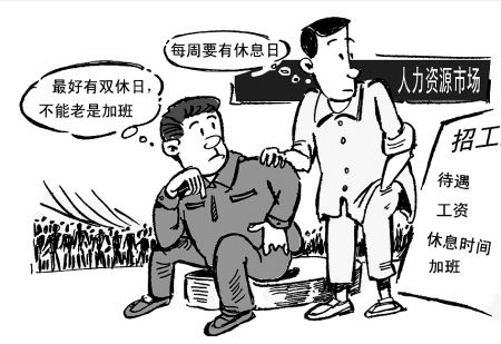 隨著更多年輕的農(nóng)民工涌入城市,新一代農(nóng)民工越來越主張自己的權(quán)利,希望自己的勞動能得到尊重,自己休息的權(quán)利也得到保障。就像網(wǎng)友@云帆說的,不愿意加班成為農(nóng)民工選擇工作的新要求是很正常的,并不是過分的要求,這也只是個開始。以后“社會保險”“醫(yī)療保險”“獎金”“年假”等都可能會成為農(nóng)民工找工作的新要求。用人單位應(yīng)該開始有危機感了,不然以后找招不到人也是可能的。
