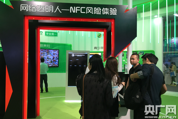 上圖是本屆網絡安全展覽中較為惹眼的項目——NFC風險體驗。只要從門中經過,身上銀行卡的個人信息、刷卡記錄都會一一呈現在黑色的顯示屏上。