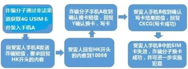 騙子利用了移動公司的一個漏洞,就是自主更換USIM卡業(yè)務。這個業(yè)務需要一個驗證碼,于是騙子借退訂業(yè)務迷惑受害者回復驗證碼到特定的短信端口。受害者以為自己是在退訂業(yè)務,實際上已經把最重要的驗證信息給了騙子。經過這些操作,受害者手機上的SIM卡立即失效,一張保留原來號碼的新的SIM卡出現在騙子的手上。這樣,在很短的時間內,就可以將關聯過的銀行卡、支付寶等資金賬戶全部修改密碼并進行轉賬或消費了。