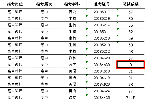 說(shuō)白了,低分者進(jìn)入,原因在于報(bào)名人數(shù)不足,并沒(méi)有太多優(yōu)秀者供挑選。不少應(yīng)聘者成績(jī)都處于60分以下以,“高中數(shù)學(xué)教師”一崗僅有兩名應(yīng)聘者進(jìn)入面試,筆試成績(jī)均未及格,一人57分,一人9分。