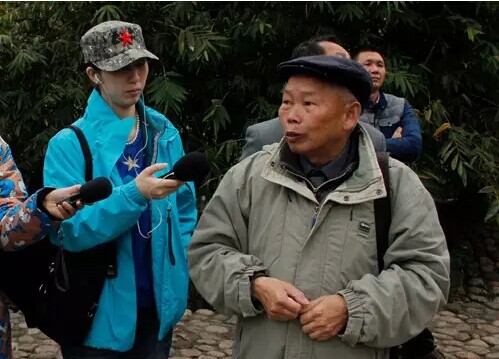 中央人民廣播電臺“行進(jìn)中國·精彩故事”報道組采訪福建連城縣培田村村民吳美熙(右一)